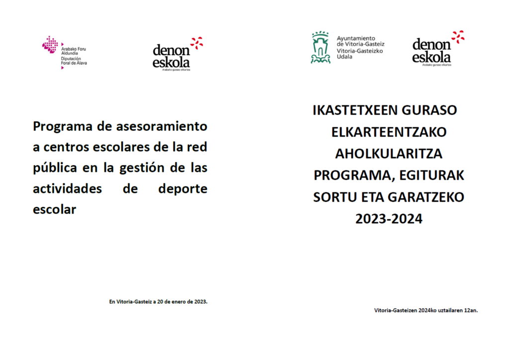 2023-tik aurrera Eskola Kirola antolatzeko ikastetxeei aholkularitza programa. Gasteizko hainbat ikastetxeei emandako aholkularitza programa, eskola kirola antolatzeko tresnak emateko.